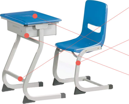 49×20×1橢圓管,直徑19×1mm圓管。學生課桌桌面為國家標準40cm*60cm 課桌及椅子高度可升降適合各不同身高的學生,調整至適合高度,可有效防止學生近視及駝背情況的發(fā)生。
